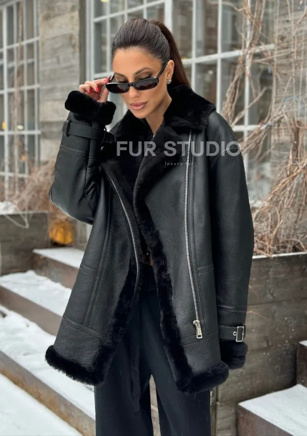 Черная дубленка авитор на овчине. Модель предлагается в размерах от 42 до 52. Оптимальная длина моделей 70-75 см подчеркивает линии вашей фигуры. Эта дубленка станет неотъемлемой частью гардероба для тех, кто предпочитает роскошь и утонченность натуральной кожи.