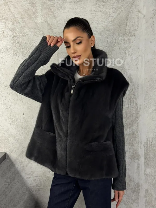 Норковая жилетка - графит 102427