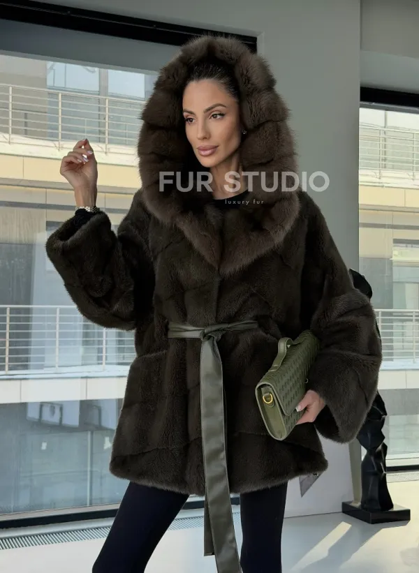Норковое пончо шуба с капюшоном из меха куницы dark olive доступна для покупки в нашем шоуруме Furs Studio в . У нас так же есть доставка во все города России. Добавьте немного роскоши в свой гардероб с этой шубой, которая будет служить вам многие годы.