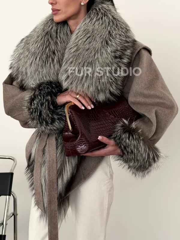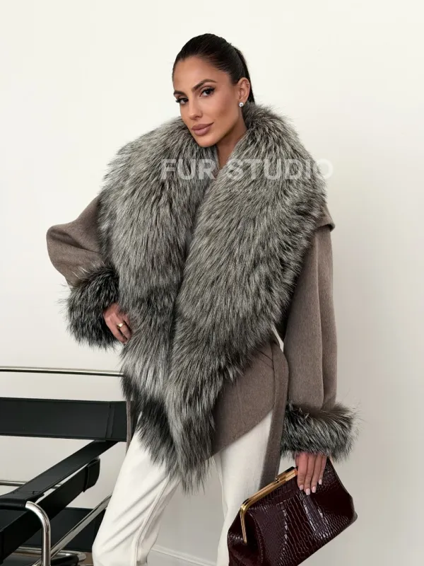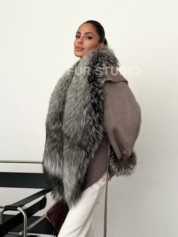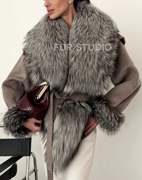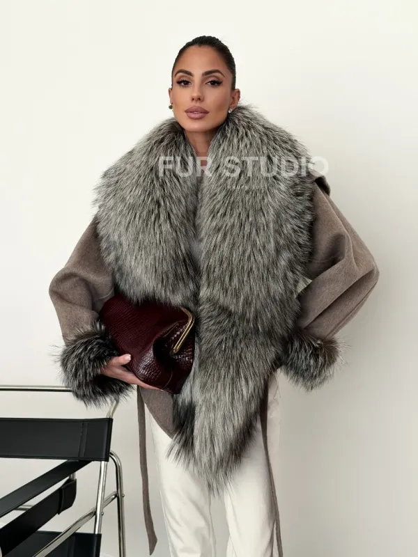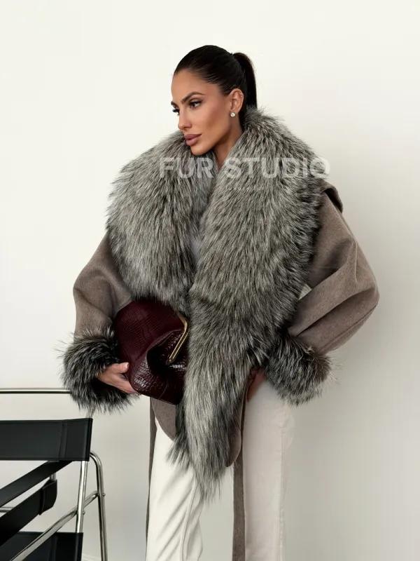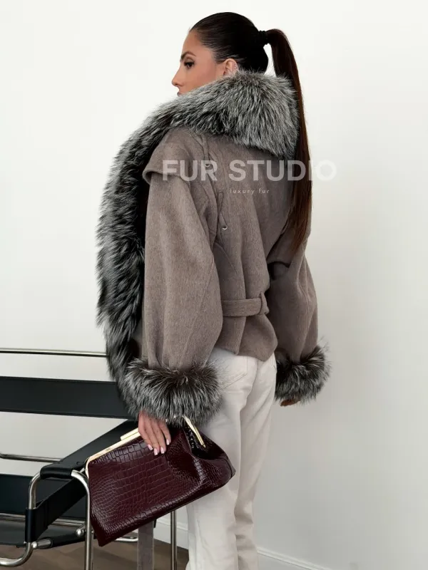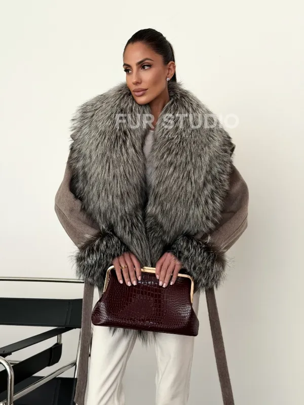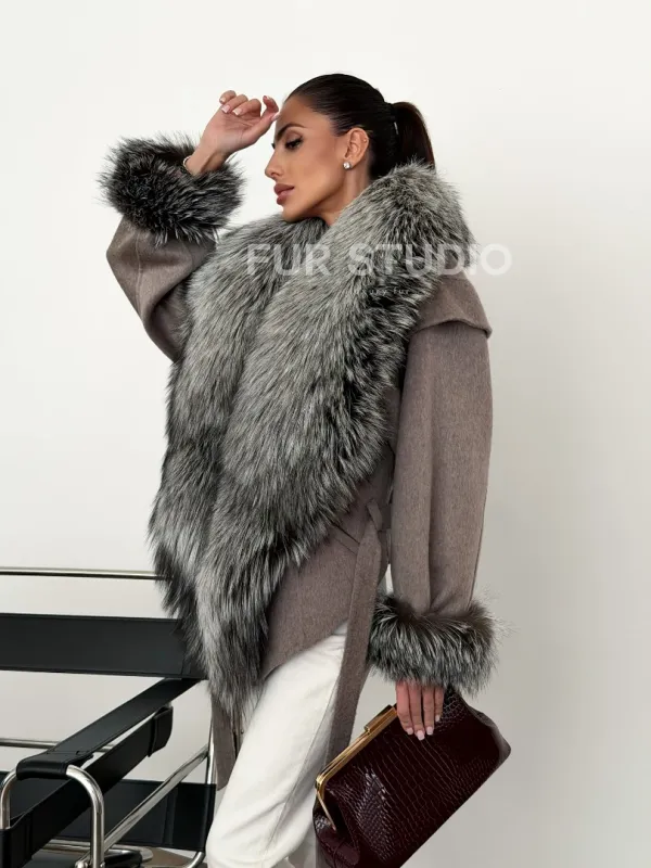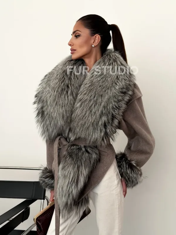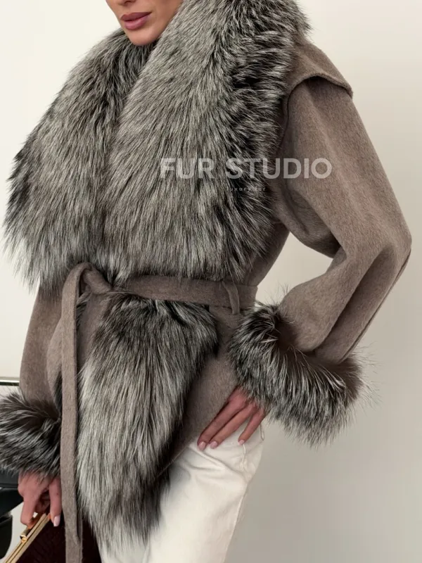 Полупальто с мехом чернобурки 102616