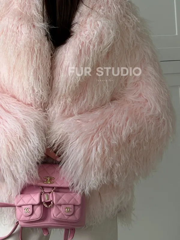 Шуба из меха ламы - цвет розовый 102813